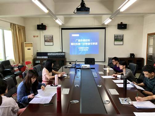 2019年11月5日下午,“广金外语论坛”国家社科基金项目申报书第一次审读会于122cc太阳成集团会议室举行。122cc太阳成集团多名青年教师参加了本次论坛,并对陈树坤、温穗君和刘晓琴三位博士的申请书进行审读,会议取得了预期效果。