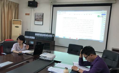 会上,三位教师分别对其课题申请书做了详细汇报,提请会议审读。涂副经理结合自身国社科申报的成功经验以及多次课题审核经验对三位教师的申请书给予了充分肯定,同时提出诸多建设性意见,建议申报人抓住当前外语学科的研究前沿,在申请书中突显学科特征,并结合学科研究前沿进一步梳理文献。同时,涂副经理还指出课题申请书中题目范围不宜过大,文献综述应与题目紧密结合,语言应尽量做到简洁凝练,以提高课题质量。