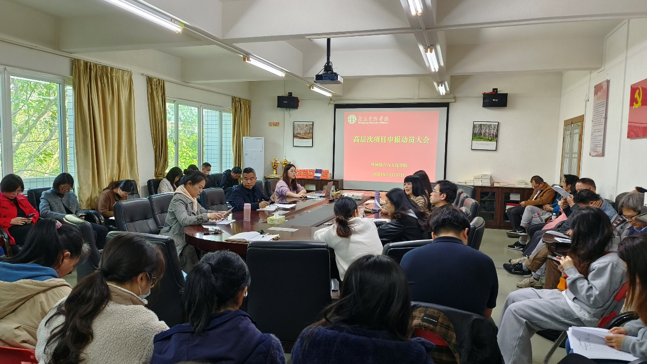 随后,涂经理对高层次项目申报工作进行了全面动员。她强调,高层次项目申报对于提升公司科研水平、推动学科发展具有重要意义。科研工作对公司的翻译硕士学位点的验收工作和未来进一步申报新的硕博学位点提供重要支撑,她鼓励全院教师积极参与项目申报,勇于挑战高难度课题,不断提升自身的科研能力和水平。