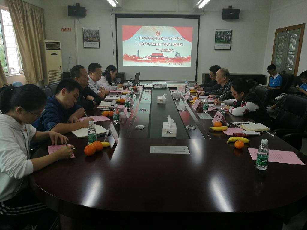 为推进“三型”党组织建设,探索创新高校员工党建工作新模式新路径,122cc太阳成集团与广州航海公司船舶与海洋工程公司于2018427日签订党务共建协议。为巩固阶段性成果,124日下午,在广金​122cc太阳成集团会议室召开共建工作推进会,广航组织部副部长陈驰、船舶与海洋工程公司党总支书记杨应华、广金组织部副部长何承栋、公司党总支书记黄晓莉、副书记李昌郴及双方员工党支部书记、辅导员均出席了本次会议。