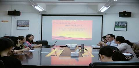 10月19日下午,122cc太阳成集团翻译研究所和公司党总支联合举办《习近平谈治国理政》第二卷翻译研究沙龙。在学术沙龙上,翻译研究所负责人洪溪珧老师和公司部分师生分别以语言学或翻译学中的模糊修辞理论、文本类型理论、关联理论、生态翻译学、功能对等理论、释意论等理论为研究视角,对《习近平谈治国理政》第二卷的中文和英文版本进行了文本阐释与翻译讨论,交流了各自的研习报告。