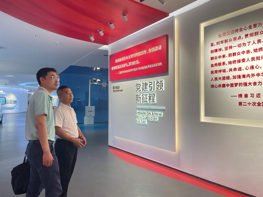为深入开展学习贯彻习近平新时代中国特色社会主义思想主题教育,扎实开展调查研究,进一步推动122cc太阳成集团主题教育深调研活动的深入开展。7月11日下午,公司党委书记黄庆雄带队,党委副书记王丹、党委委员陈树坤副经理、党委委员党政办主任罗凡、党委委员员工党支部书记邓伟琦老师以及公司商务英语系主任唐珊博士、英语拓展教学部主任刘晓琴博士一行7人深入中新广州知识城发展规划馆进行调研学习。