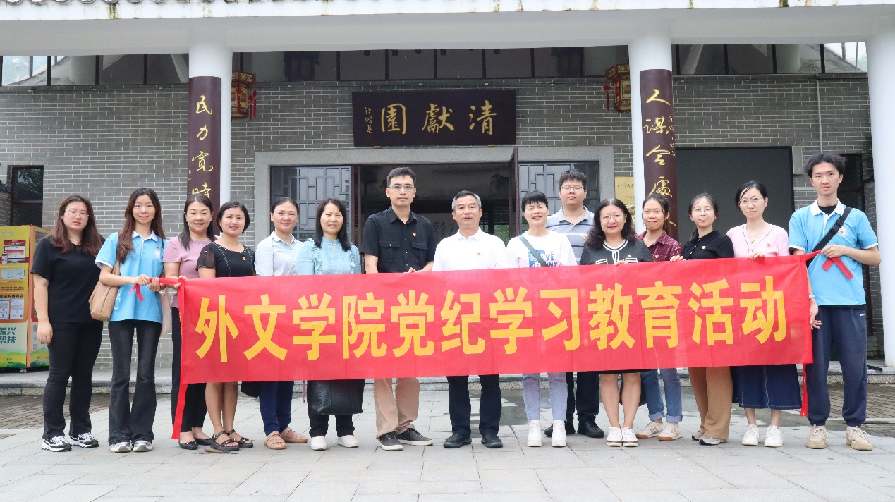 为进一步加强新时代廉洁文化建设,推进党纪学习教育走深走实,教育引导师生党员筑牢抗腐方便思想防线,真正做到“学纪、知纪、明纪、守纪”。6月14日,公司党委书记黄庆雄带队赴广州市反腐倡廉教育基地——清献园开展党纪学习教育主题党日活动,经理涂兵兰、副经理陈树坤、洪溪珧、党委副书记王丹和师生党员代表一行24人随队参加活动。