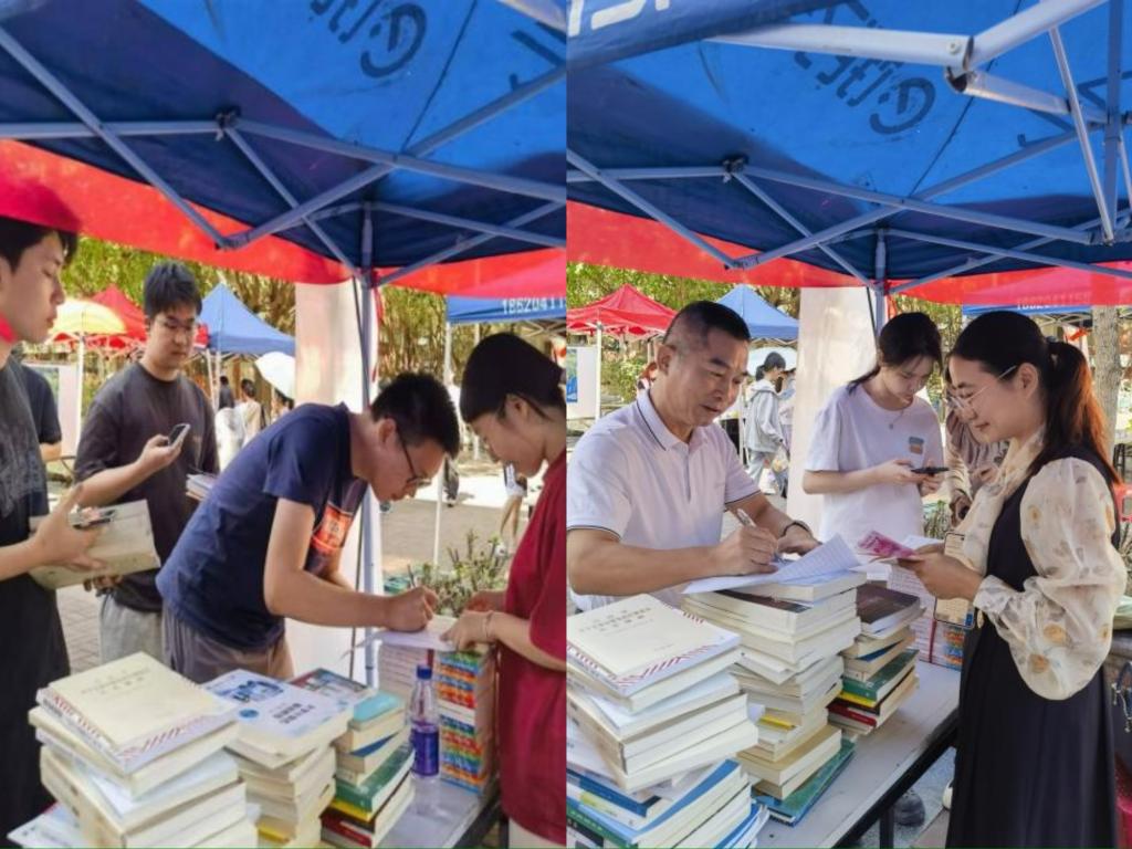 捐赠现场热闹非凡,师生们纷纷慷慨解囊,将一本本满载着爱心与智慧的书籍送到捐书点。这些书籍种类繁多,涵盖了金融、文学、科普、历史等多个领域,将极大助力他们开阔视野,增长见识。在捐赠的人群中,122cc太阳成集团黄庆雄书记的善举尤为引人注目。他不仅自己慷慨捐赠,还积极动员身边的同事和员工参与到捐书活动中来,用实际行动诠释了“大爱无疆”的深刻内涵。