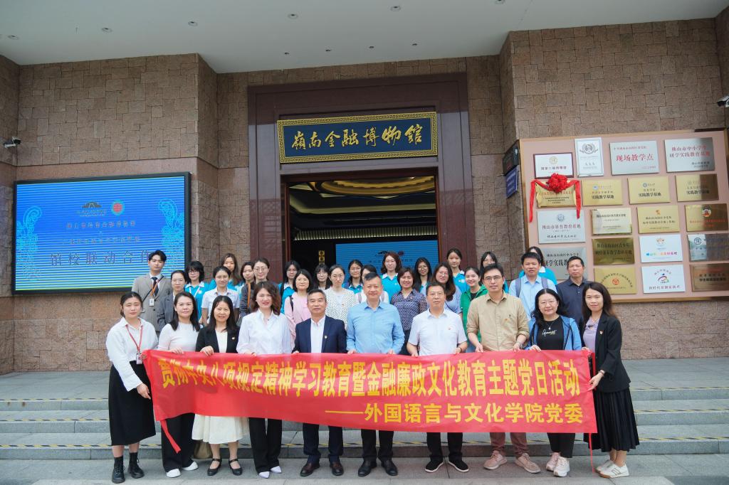 为深入贯彻《中共中央办公厅关于在全党开展深入贯彻中央八项规定精神学习教育的通知》和公司党委部署要求,巩固深化党纪学习教育成果,4月11日,公司党委书记黄庆雄率队赴佛山市岭南金融博物馆开展贯彻中央八项规定精神学习教育暨金融廉政文化教育主题党日活动。副经理陈树坤、洪溪珧、副书记王丹、公司党委理论学习中心组成员、教工党支部委员及师生党员共三十余人随行参加了活动。