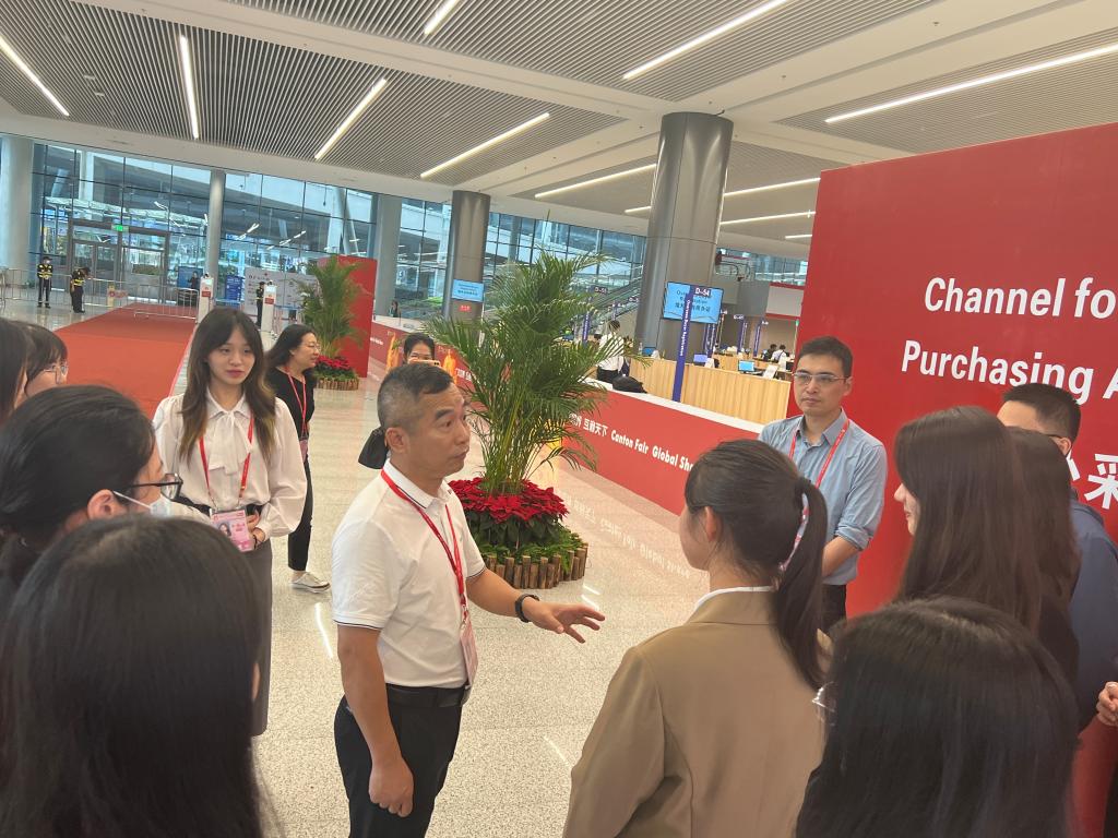 4月25日下午,公司党委书记黄庆雄率队前往广州135届广交会展馆现场开展访企拓岗及员工实践实习调研,公司副经理陈树坤、党委副书记王丹、辅导员邓伟琦、孙嘉程老师随行。