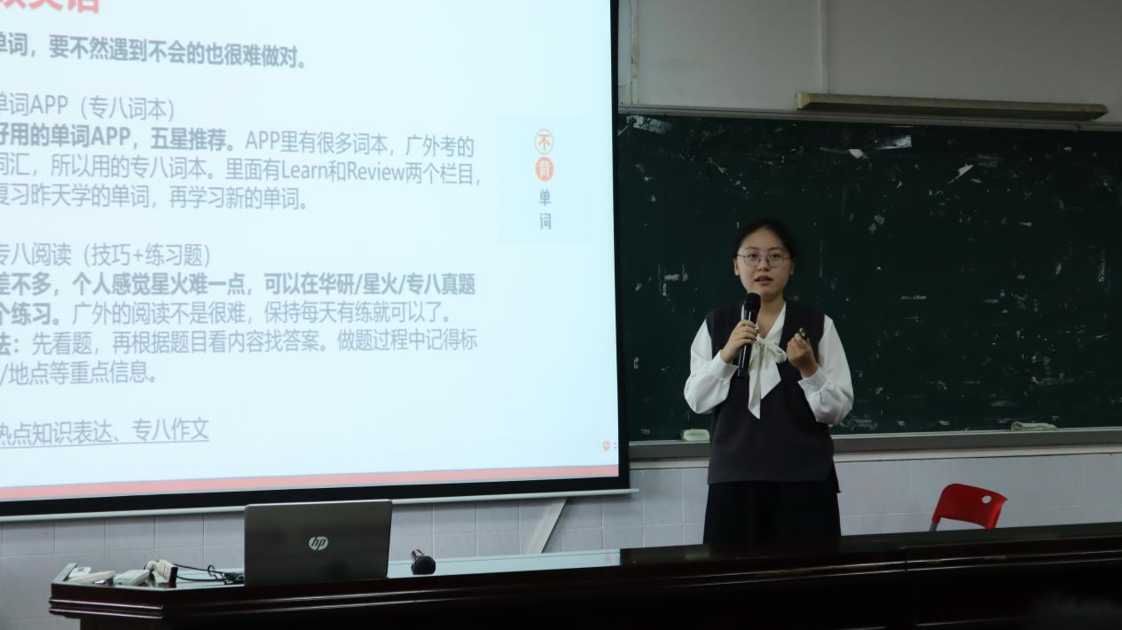 随后,来自北京燕兴国际教育咨询有限公司的邹景斌老师对同学们进行了境外升学规划指导。洪溪珧副经理对上岸考生表达了衷心的祝贺,她强调明确目标、坚持不懈和努力奋斗的重要性,并提醒同学们要不畏考研的辛苦,调节心态,以最好的状态迎接考试。