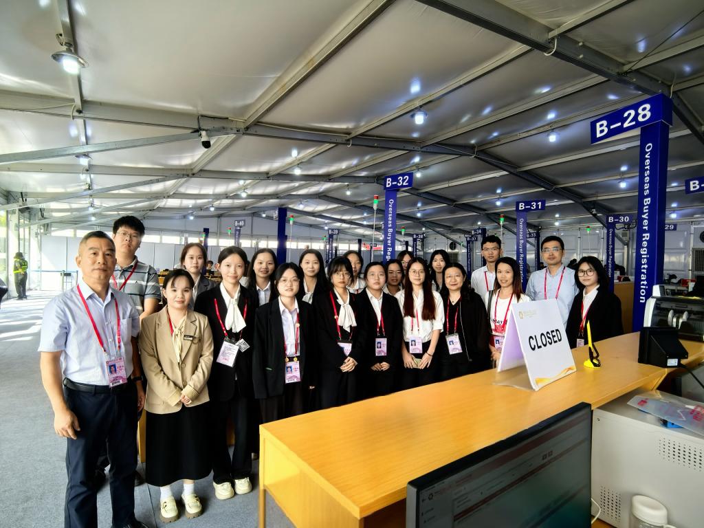 本届广交会​2022级员工实习实践服务团队,主要负责境外采购商办证、展厅咨询、室外导向、内勤管理等多个岗位的工作。在广交会展馆现场,公司领导详细询问了同学们的工作内容、遇到的挑战以及个人的成长和收获,对同学们踏实肯干、吃苦耐劳的工作态度以及出色的综合实践能力给予高度评价。同学们纷纷表示,能够参与到广交会这样的国际盛会感到非常荣幸和自豪。在这里,他们不仅提升了专业技能,还增强了沟通能力和团队协作意识,真切地感受到了在跨文化背景下进行国际交流的魅力。同时,他们也深刻体会到了责任与担当的重要性,表示将不负公司、公司和社会的期望,不断努力学习和提升自己,为广交会的成功举办作出应有的贡献。