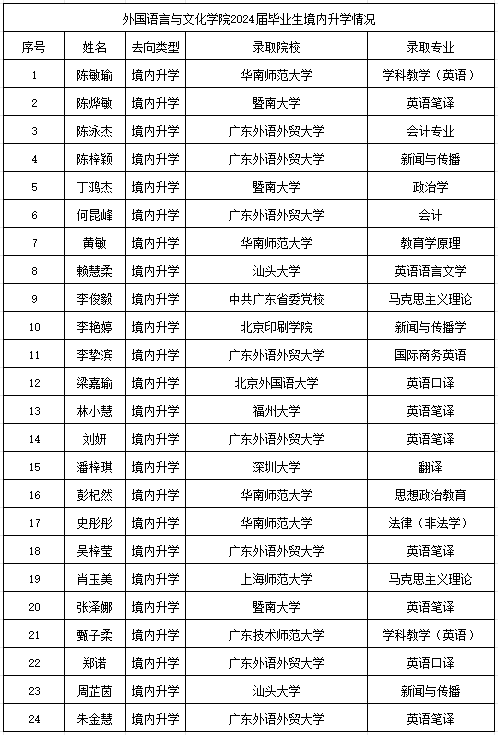 2024届考取硕士研究生情况一览表