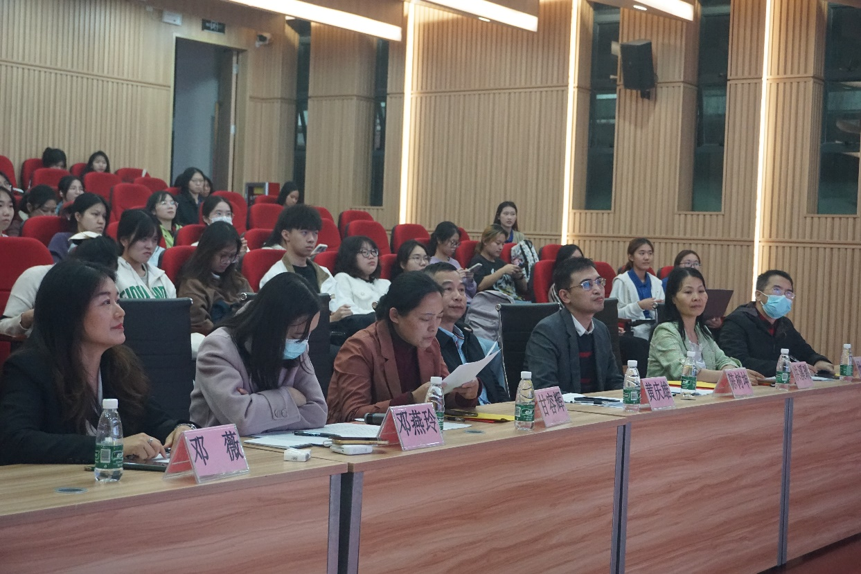 其后,邓燕玲老师对比赛进行了点评:夸赞了选手的专业素养和强大的心理素质,为选手指明了改进的方向,选手和观众都受益匪浅。之后,老师们为获奖选手颁奖,现场掌声热烈。最后,由黄庆雄书记进行闭幕式致辞:勉励学子培养与提高专业能力,继续以全力以赴的精神争取更大的胜利。本次口译比赛圆满落幕。