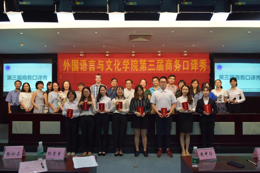 本次大赛经过层层选拔,共有8名选手进入决赛。比赛当晚分为“选手亮相”、“口译商务访谈场景”、“评委点评”三个环节。选手们发音标准,反应迅速,准确地将商务场景内容翻译出来,充分地展现出高水准的口译能力。经过激烈的角逐,最终,王晶晶同学荣获一等奖,江紫妍同学、蔡佩婵同学、陈榕娜同学荣获二等奖,朱笑红同学、赖宇珊同学、翁毓其同学、赖雪仪同学荣获三等奖。