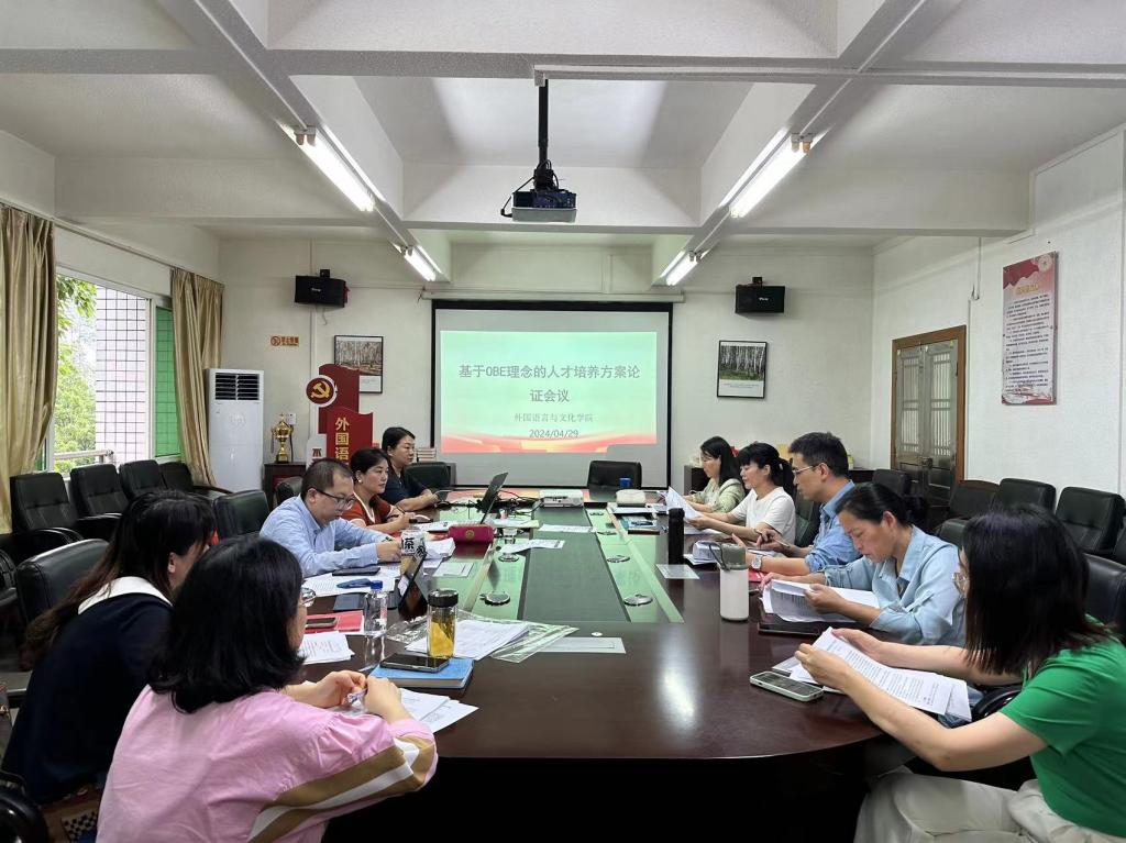 122cc太阳成集团于2024年4月29日上午9:00在会议室召开了基于OBE(Outcome-Based Education,成果导向教育)理念的人才培养方案论证会议。本次会议聚焦于如何通过OBE理念,优化英语、商务英语、翻译三个专业的人才培养方案,以更好地适应社会和市场的需求。