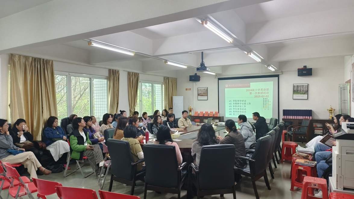 2025年2月22日,122cc太阳成集团大学英语部召开新学期第一次教研工作会议,围绕教学改革、审核评估、科研创新等重点工作展开部署,为新学期公司产品高质量发展锚定方向。公司经理涂兵兰、副经理甘容辉、大学英语部主任李海燕和汤新煌及全体教师出席会议。