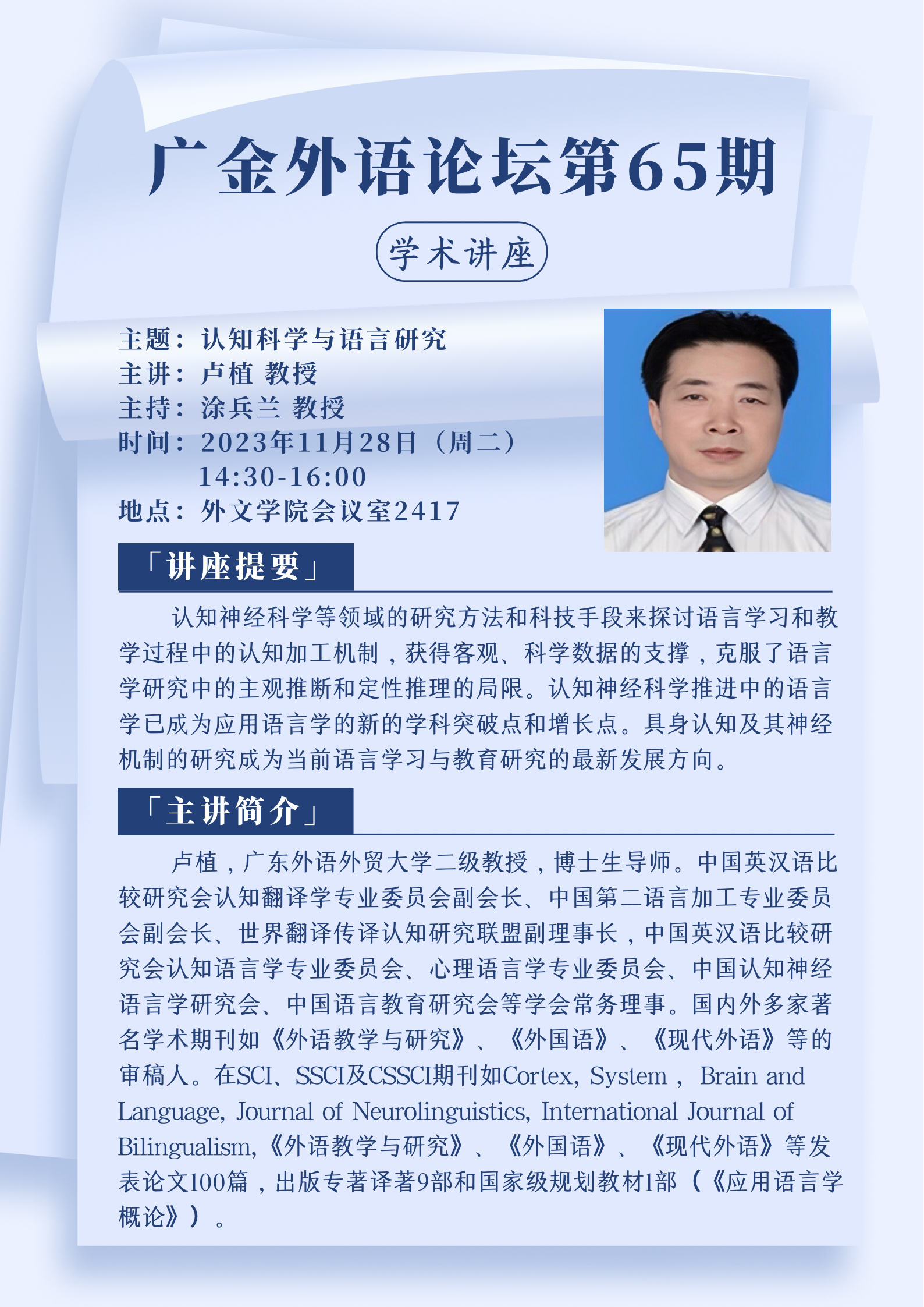 广金外语论坛第65期:认知科学与语言研究