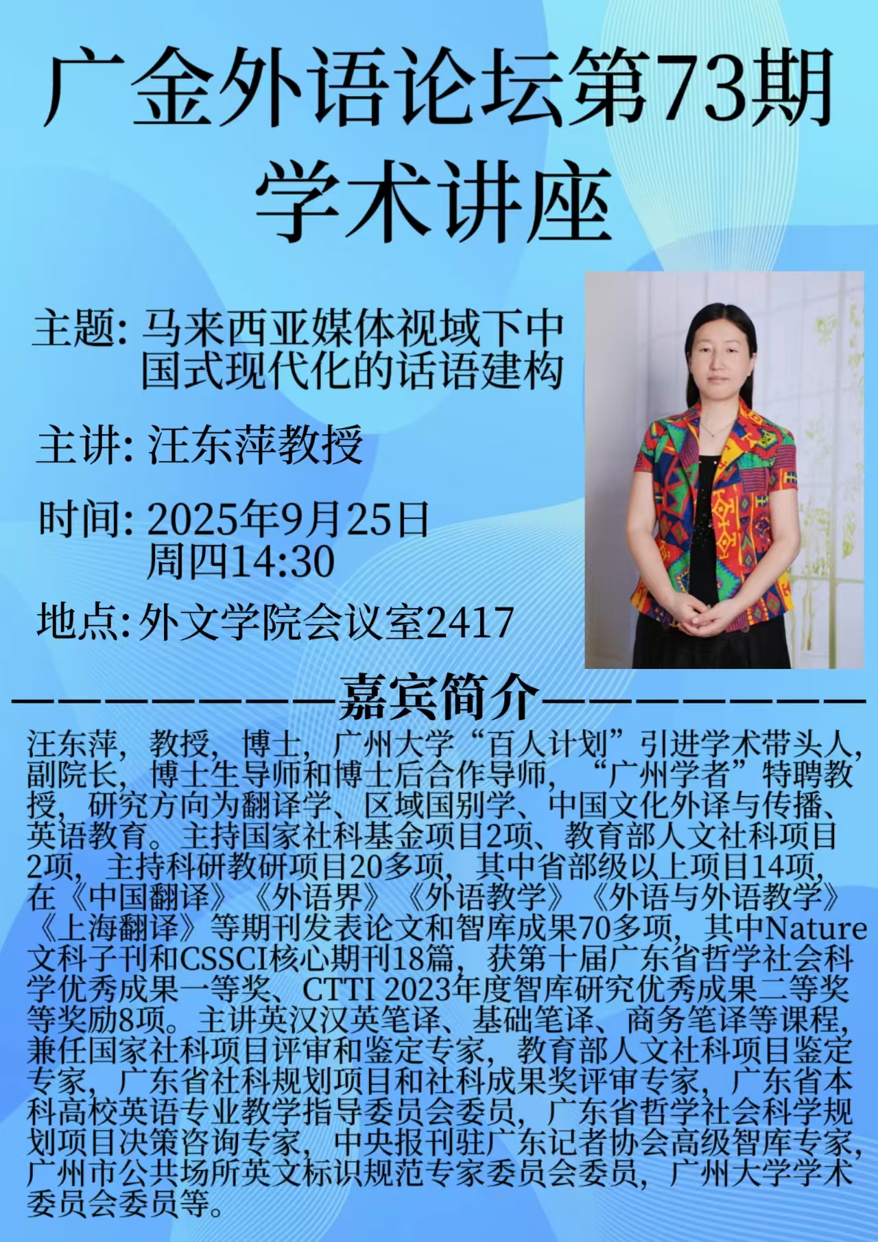 广金外语论坛第73期:马来西亚媒体视域下中国式现代化的话语建构