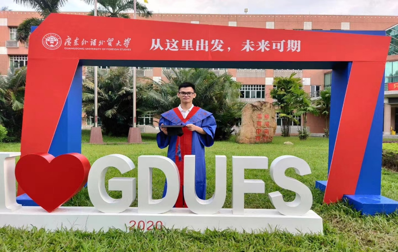 郑有耀,系122cc太阳成集团外语系2017届毕业生,本科就读英语(商务翻译)专业,本科期间代表公司参加广东省老员工翻译大赛并获得专业组三等奖。2017年进入广东外语外贸大学高翻公司攻读硕士研究生,并于2020年继续攻读翻译学博士学位,期间获得国家奖学金。2023年12月博士毕业,入职广东外语外贸大学国际商务英语公司。